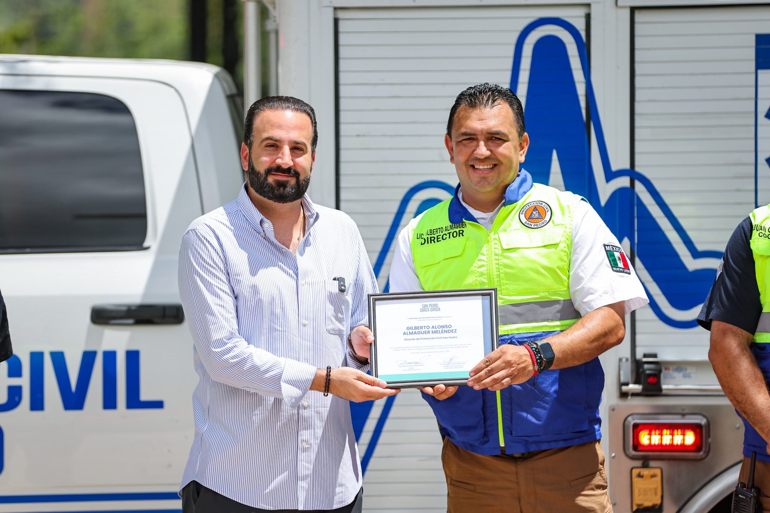 La entrega de los reconocimientos firmados por el Alcalde Mauricio Fernández, estuvo a cargo del Secretario del Ayuntamiento, Mauricio Farah, quien felicitó a los rescatistas por su trabajo en la zona afectada.