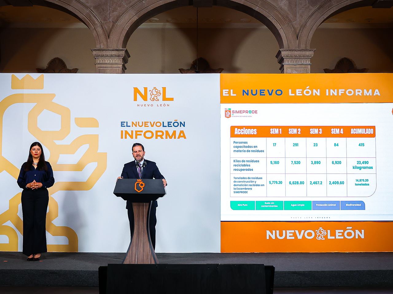 Simeprode recuperó 60 mil kilos de basura; 14 mil kilos de llantas; 268 puntos de intervención a través del programa Ciudades Verdes; 23 mil kilogramos de materiales reciclables; y más de 14 mil toneladas de materiales de la construcción recuperados; 415 personas se capacitaron en el tema especializado en manejo de residuos.