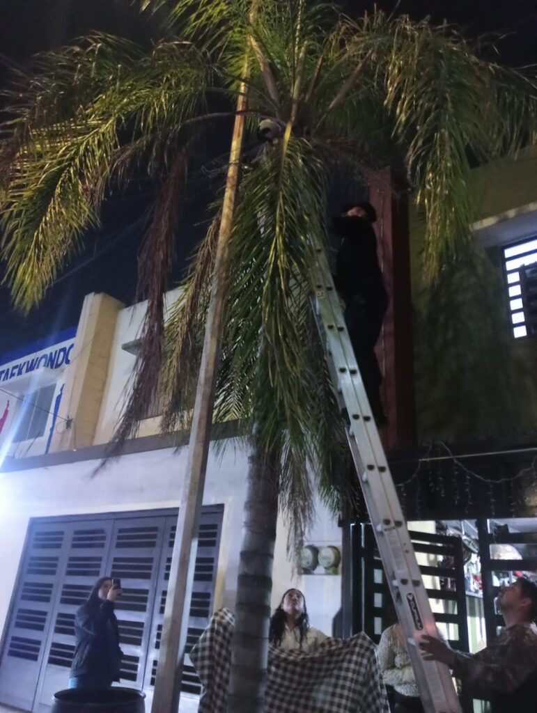 Escobedo, Nuevo León.- Proxpol volvió a demostrar que su vocación va más allá del uniforme al convertirse en los ángeles de un inquieto gato que quedó varado en lo alto de una palma de gran altura.