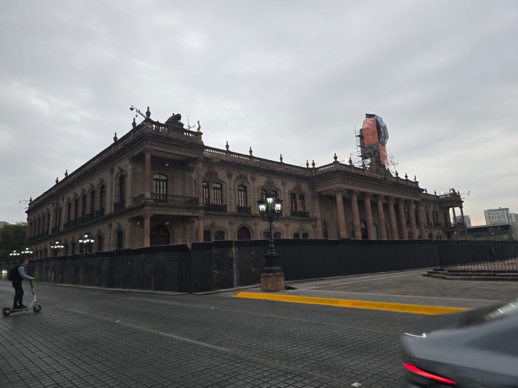 Nuevo León.- Elementos de Fuerza Civil, colocaron vallas metálicas alrededor del Palacio de Gobierno de Nuevo León, para prevenir algún ataque o actos vandálicos y como medida de contención antre las manifestaciones que se esperan este 25 de noviembre.
