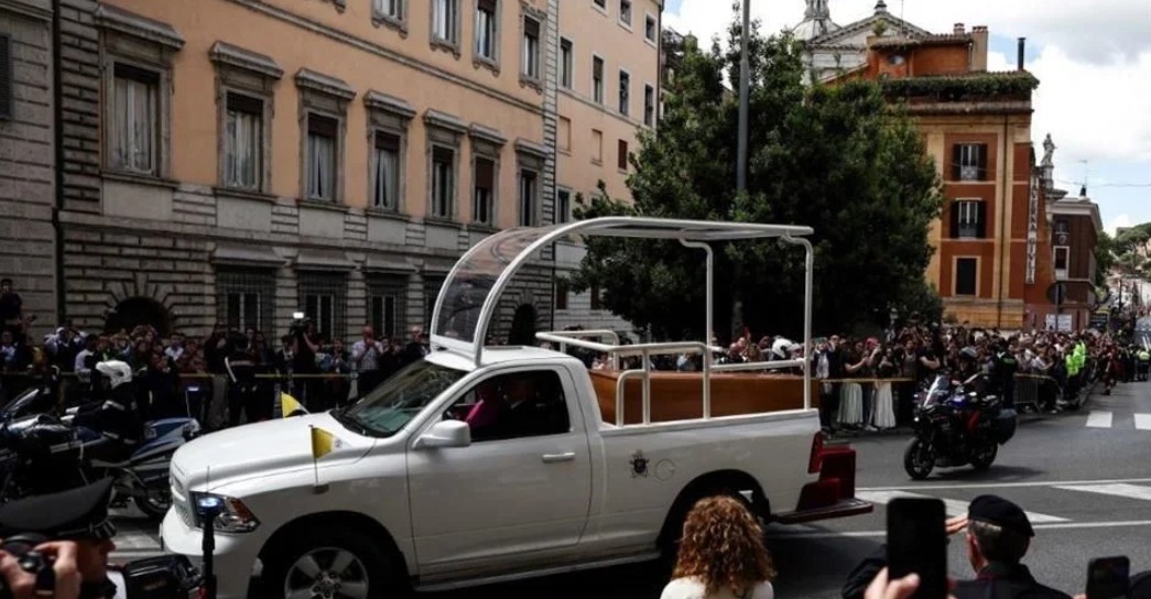 De la Basílica de San Pedro hasta la Basílica de Santa María la Mayor en Roma, los restos del primer papa latinoamericano fueron trasladados en una camioneta Dodge Ram color blanco que utilizó Francisco en su viaje a México de 2016 y que las autoridades mexicanas donaron al Vaticano, dijo a la AFP un portavoz de la Conferencia del Episcopado Mexicano (CEM).