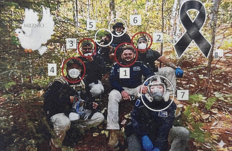La imagen, publicada por el medio Milenio, corresponde al 18 de abril, día en que fue desmantelado un narcolaboratorio en el municipio de Morelos. En ella aparecen las cuatro personas que posteriormente fallecieron en un accidente vial, acompañadas de otros individuos, todos con indumentaria oficial de la Fiscalía de Chihuahua.