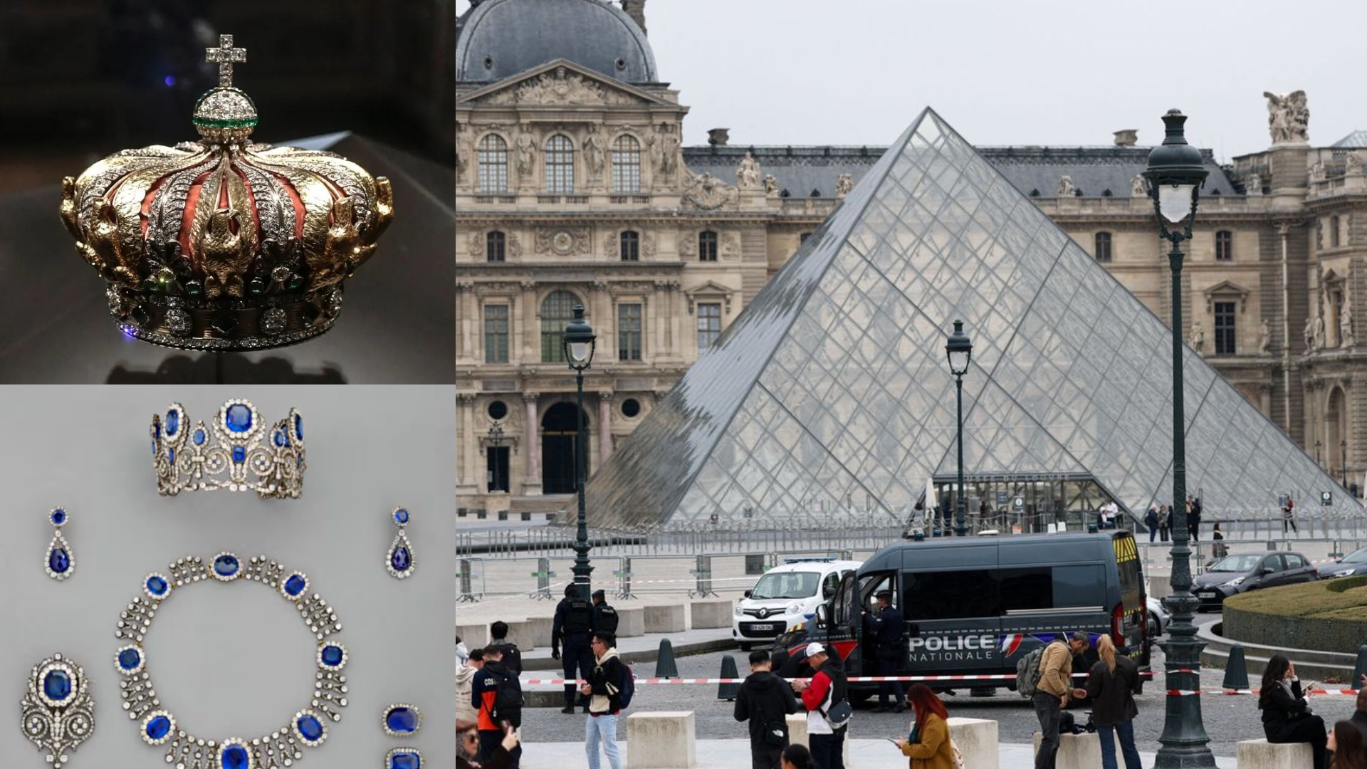 De acuerdo con las primeras indagatorias, una de las joyas, la corona de Eugenia de Montijo, fue hallada en el exterior del museo, dañada, mientras que el resto del botín permanece desaparecido.