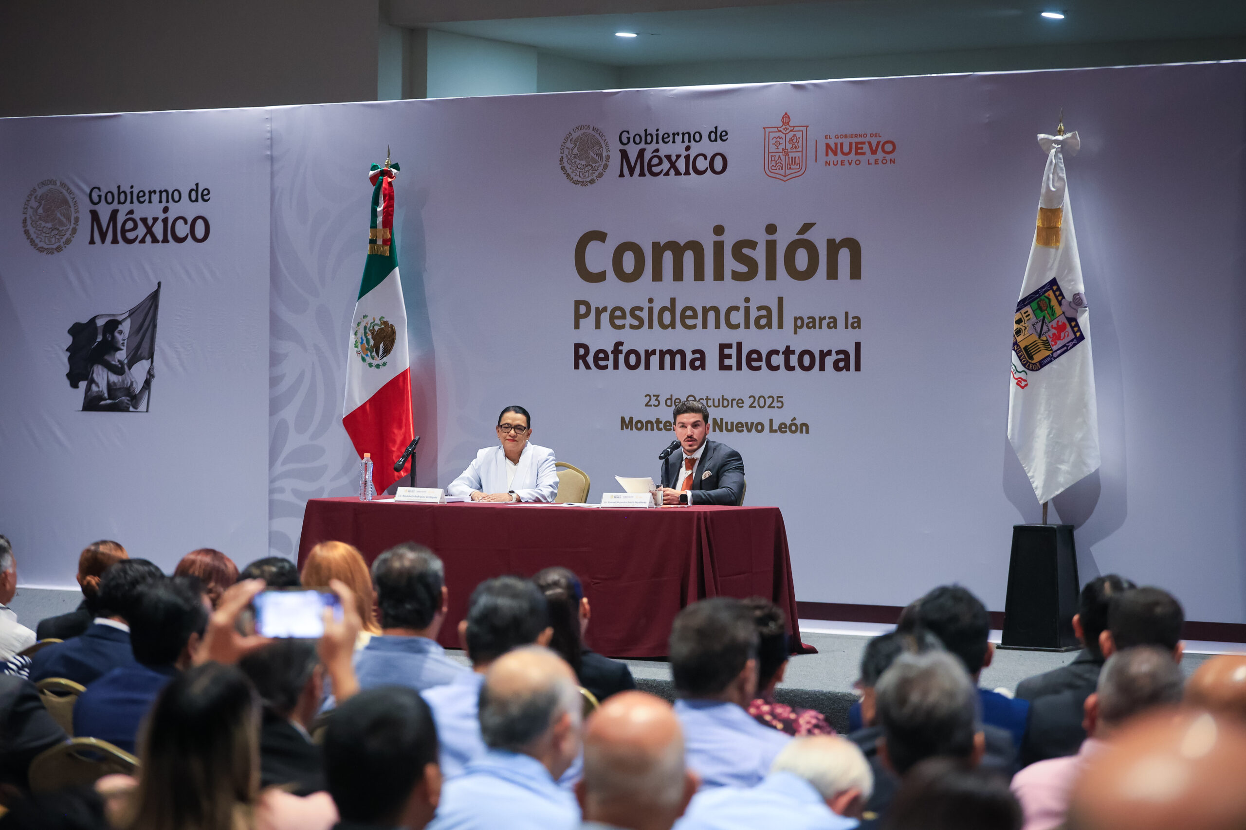 Por su parte, Rosa Icela Rodríguez agradeció la colaboración del Gobierno de Nuevo León en la organización del encuentro, cuyo objetivo —dijo— es fortalecer la democracia mediante el diálogo y recoger propuestas ciudadanas para construir una iniciativa nacional de reforma electoral.