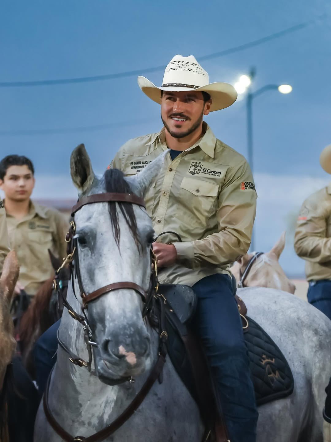 El Gobernador del Estado, Samuel Alejandro García Sepúlveda participó este domingo en la Cabalgata 2025, organizada por la presidencia municipal de El Carmen.