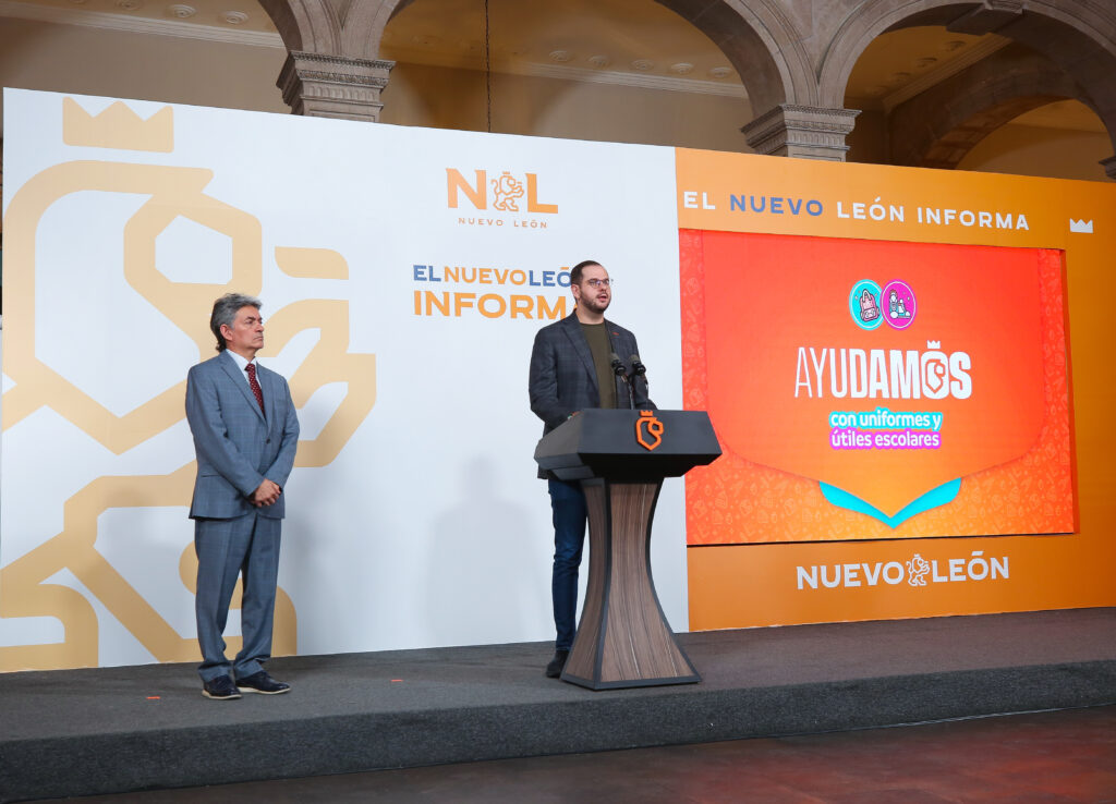 Nuevo León.- Al dar a conocer el informe del programa “Ayudamos” con uniformes y útiles escolares, el Secretario de Educación, Juan Paura García, dio a conocer que la estrategia sigue avanzando y la meta será beneficiar a los estudiantes con más de 201 mil 190 uniformes y kits escolares.