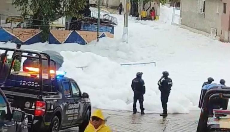 Naucalpan, Estado de México.– Las intensas lluvias registradas en las últimas horas provocaron el desbordamiento de la presa Los Cuartos, en el municipio de Naucalpan, lo que generó severas afectaciones en la zona de San Rafael Chamapa, donde al menos 10 calles fueron anegadas por aguas residuales y cubiertas por una densa espuma de origen aparentemente contaminante.