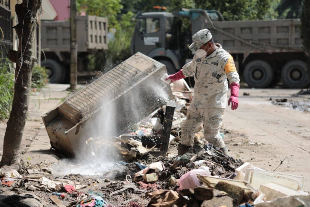 Los cuerpos de auxilio continúan con las labores de búsqueda y rescate, así como de apoyo a las comunidades afectadas, principalmente en las zonas rurales de Vercruz, Hidalgo y Puebla, en donde todavía se tiene algunas comunidades incomunicadas y se están realizando labores de fumigación para evitar enfermedades como el dengue.