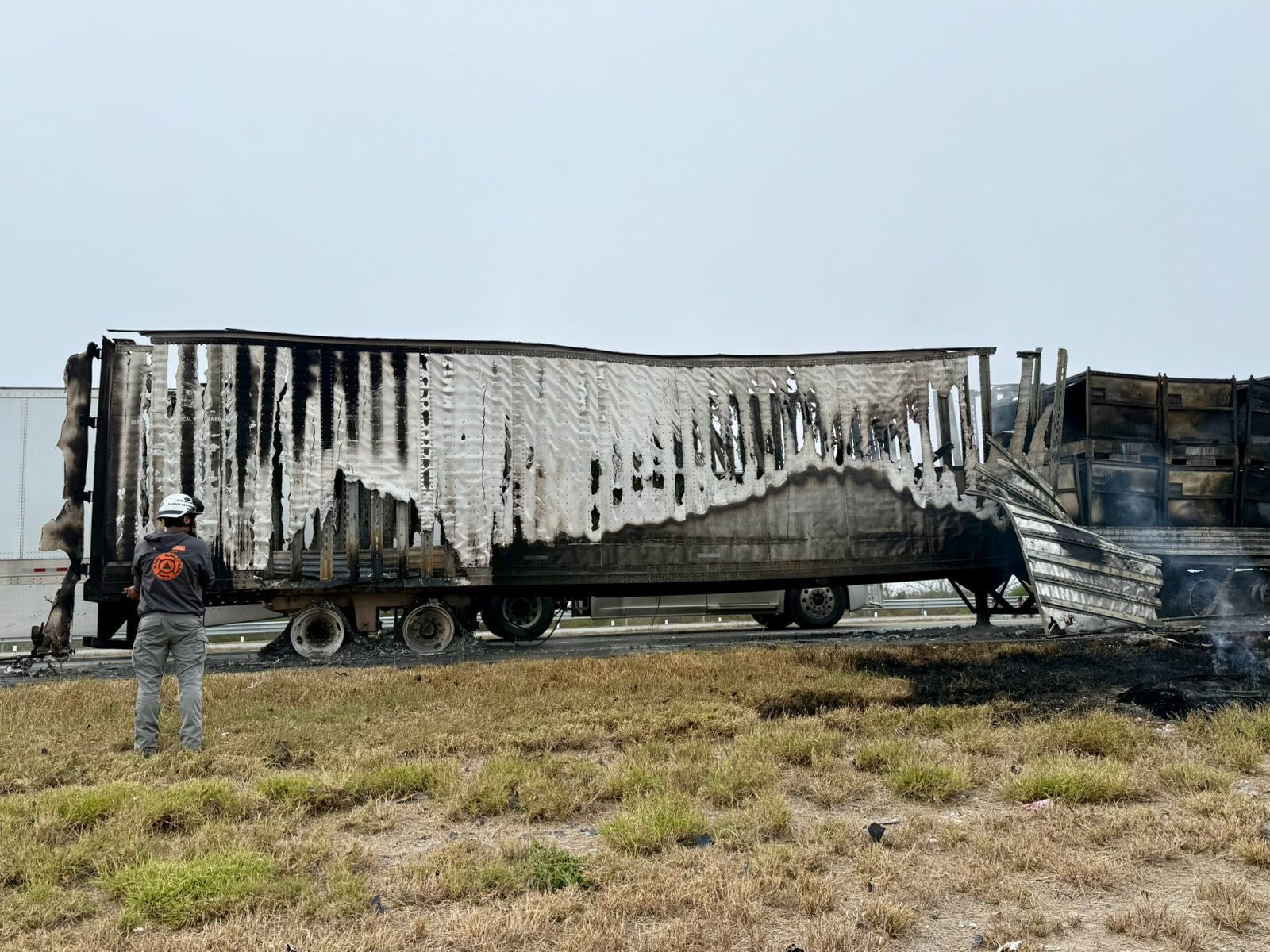 Las unidades se desplazaban hacia la frontera con el estado de Tamaulipas. Pero al llegar a este punto de la carretera, una de las unidades de carga se impactó por alcance.
