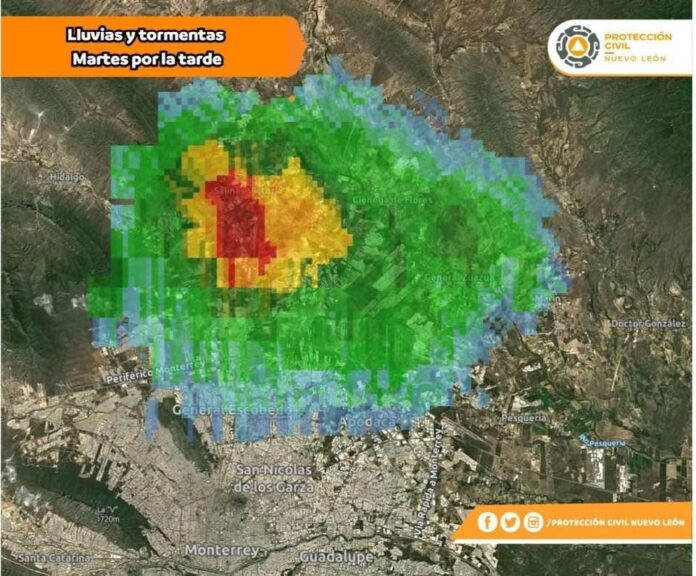 De acuerdo con el reporte oficial, las precipitaciones alcanzaron a los municipios de Ciénega de Flores, General Zuazua, Salinas Victoria —donde además se registró caída de granizo— y El Carmen.