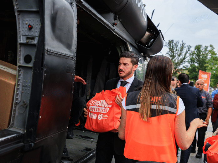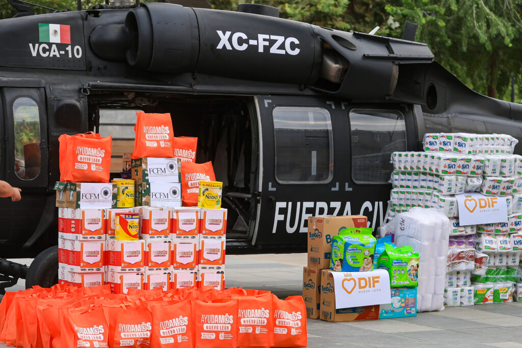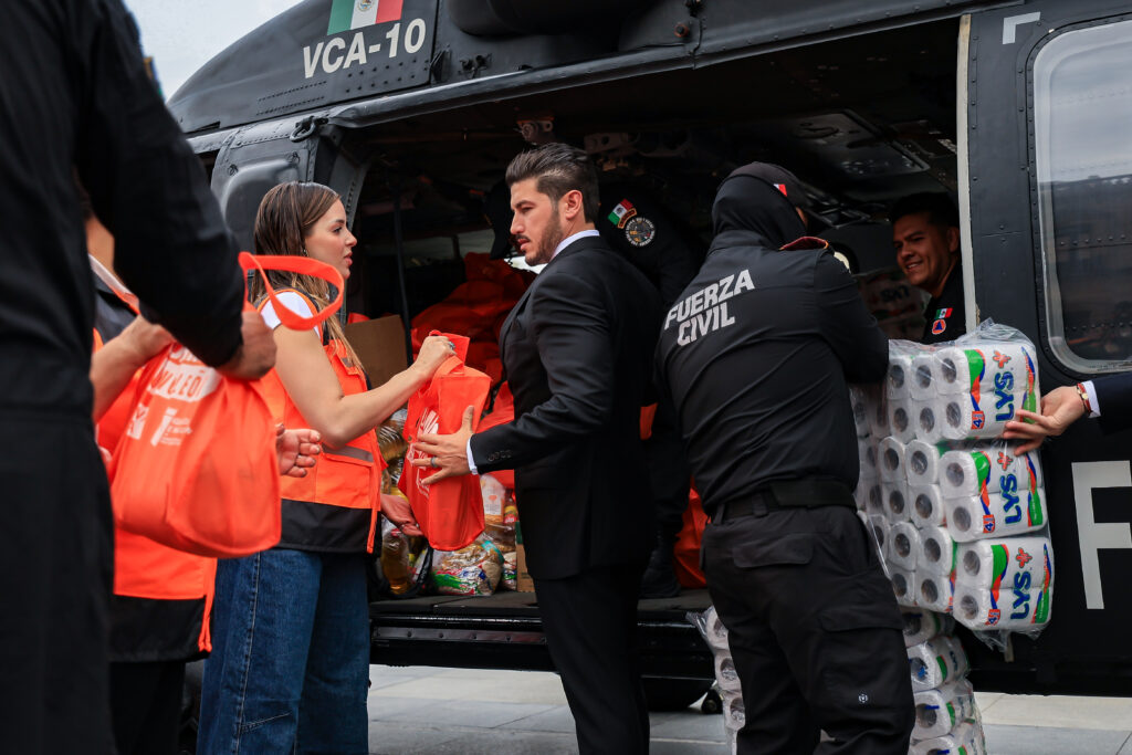 Acompañado de la Titular de AMAR a Nuevo León, Mariana Rodríguez, del Secretario General de Gobierno, Miguel Flores; de la Secretaria de Igualdad e Inclusión, Martha Herrera; del Titular de la Fuerza Civil, Gerardo Escamilla; de la Directora del DIF, Gloria Bazán; y del Director de Protección Civil, Erik Cavazos, el Mandatario estatal precisó que a la fecha se han enviado 87 toneladas de alimentos y artículos de primera necesidad.