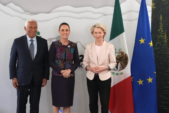 “En el G7, nos reunimos con el presidente del Consejo Europeo, António Costa, y la presidenta de la Comisión Europea, Ursula von der Leyen, para dialogar sobre la actualización de nuestro tratado comercial. La invité a visitar México”, publicó Sheinbaum.