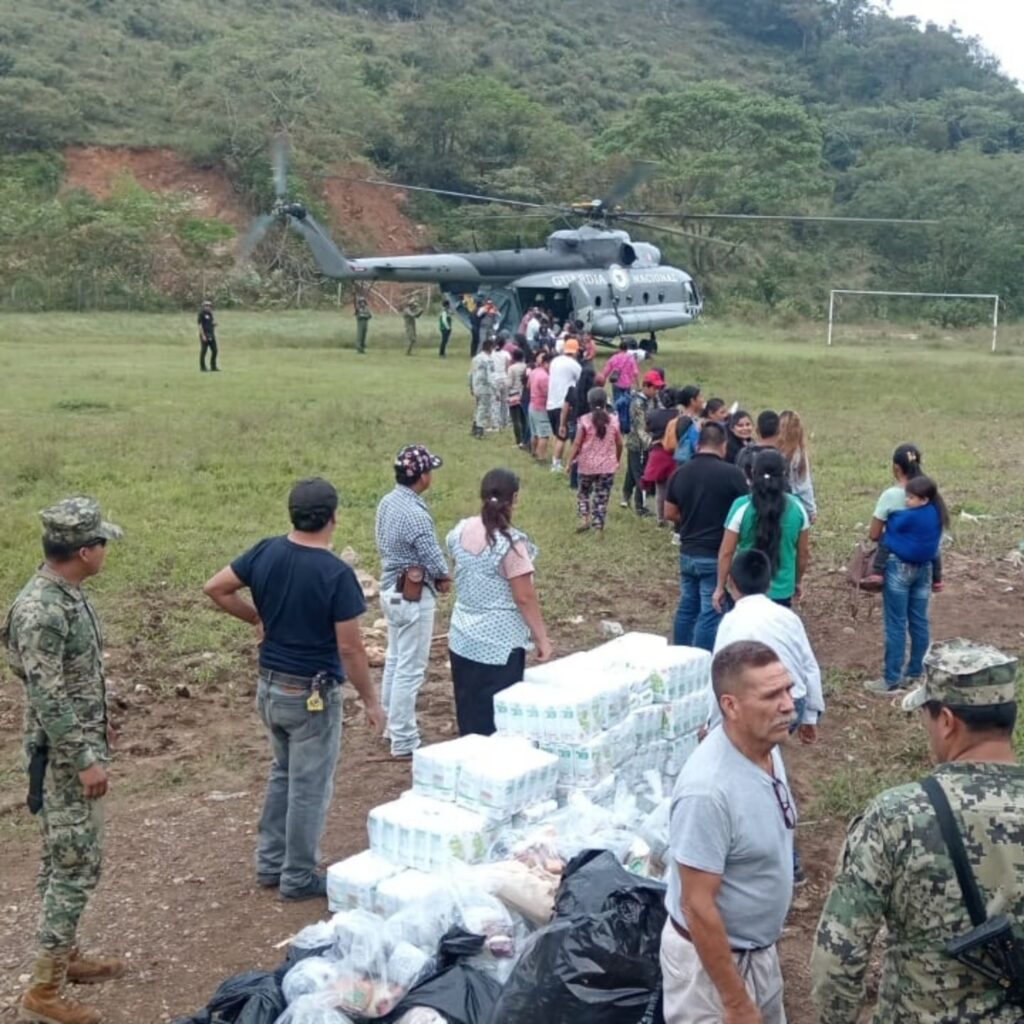 Las lluvias intensas que se registraron entre el 7 y 11 de octubre dejaron daños en caminos, viviendas, cultivos y red eléctrica, se han restablecido ya algunos caminos, pero todavía hay comunidades incomunicadas, pero los trabajos para restablecer la comunicación continúan, mientras lo apoyos llegan a los damnificados por medio de helicópteros.