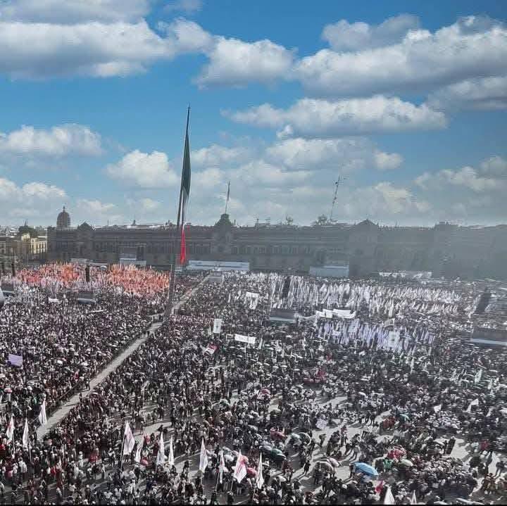 México.- Ante más de 600 mil mexicanas y mexicanos reunidos en el Zócalo de la Ciudad de México, la Presidenta Claudia Sheinbaum Pardo, celebró los 7 años de la llegada de la Cuarta Transformación y puntualizó que por más campañas sucias y alianzas de grupos del conservadurismo nacional e internacional que buscan intervenciones extranjeras, no podrán vencer al pueblo ni a la Jefa del Ejecutivo Federal, ya que el movimiento representa una ruptura con el viejo régimen y una transformación verdadera, económica, social y moral que se guía por el Humanismo Mexicano.