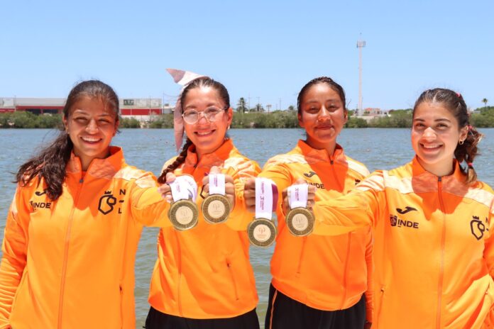 Puerto Progreso, Yucatán – Ante la presencia de la Directora General del INDE, Melody Falcó, el poder del canotaje femenil de Nuevo León se dejó sentir este viernes en la pista de Remo y Canotaje de Yucatán al lograr 4 de las 5 medallas de oro en juego en la jornada donde además se agenciaron 3 metales de plata.