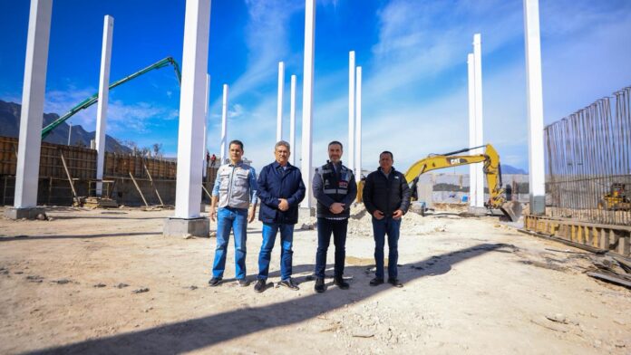 Monterrey, Nuevo León.- Con los cimientos terminados y la colocación casi total de la estructura metálica, la construcción del C4 norte lleva un avance general del 31 por ciento, según constató este viernes el alcalde Adrián de la Garza en un recorrido de supervisión por la obra.