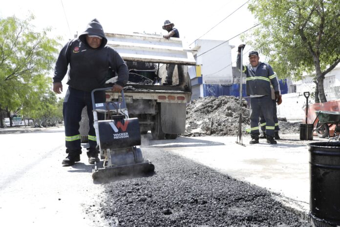 Escobedo, Nuevo León.- A un año y medio de la rehabilitación de la Avenida Agualeguas, el alcalde de Escobedo, Andrés Mijes, supervisó los trabajos de recarpeteo que realiza el Municipio tras la reparación de una fuga de drenaje en la colonia La Concordia.