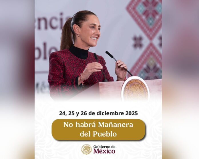 «Con motivo de las celebraciones, no habrá Mañanera del Pueblo del miércoles 24 al viernes 26 de diciembre.»