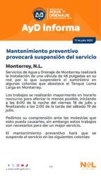 Por lo que el servicio se verá suspendido temporalmente en algunas colonias de Monterrey, desde las 20:00 horas de este viernes 18 de julio hasta las 14:00 del sábado 19.