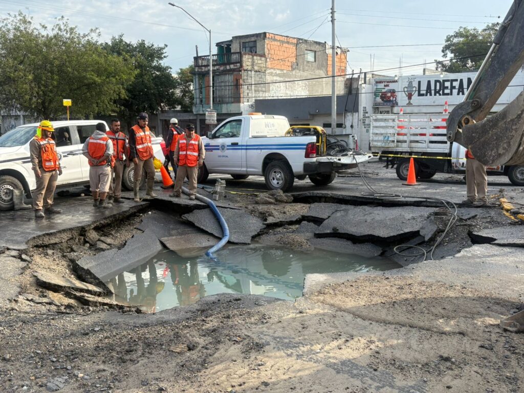 La tubería que se rompió se encuentra sobre la avenida López Mateos, casi a la altura de Benito Juárez, en donde se produjó un socavón por la fuerza del agua y se tuvo que cerrar a la circulación la vialidad, mientras se realizan los trabajos de reparación.