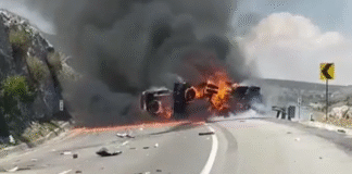 Se registra un choque e incendio sobre la carretera Monterrey-Saltillo