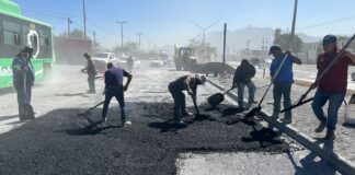 Realizan trabajos de bacheo en avenida Luis Donaldo Colosio en Santa...