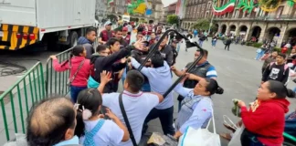 Vendedores ambulantes y empleados del Gobierno protagonizan riña en pleno Zócalo...