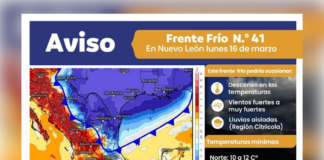 Ingresará frente frío 40 a Nuevo León mañana miércoles