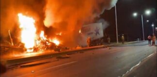 Se registra un choque e incendio sobre la carretera Monterrey-Saltillo
