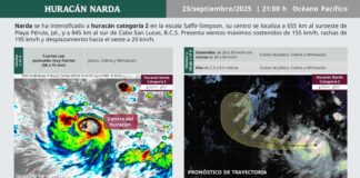 Huracán “Narda” se intensifica a categoría 2; provoca lluvias y oleaje...