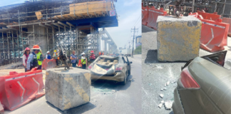 Cae bloque de concreto de obra del Metro sobre auto en...
