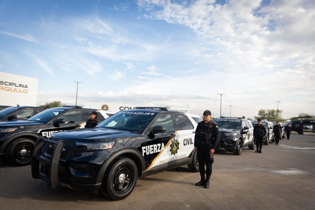 Durante la ceremonia se entregaron 200 unidades entre camionetas tipo SUV Explorer Police Interceptor, modelo 2025 y camionetas Durango, ambas equipadas como patrullas.