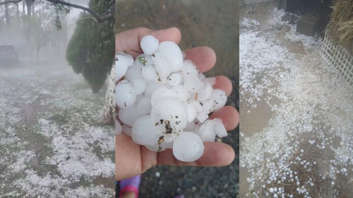 La granizada que se dejó sentir durante la tarde del domingo prácticamente cubrió todo de color de blanco.