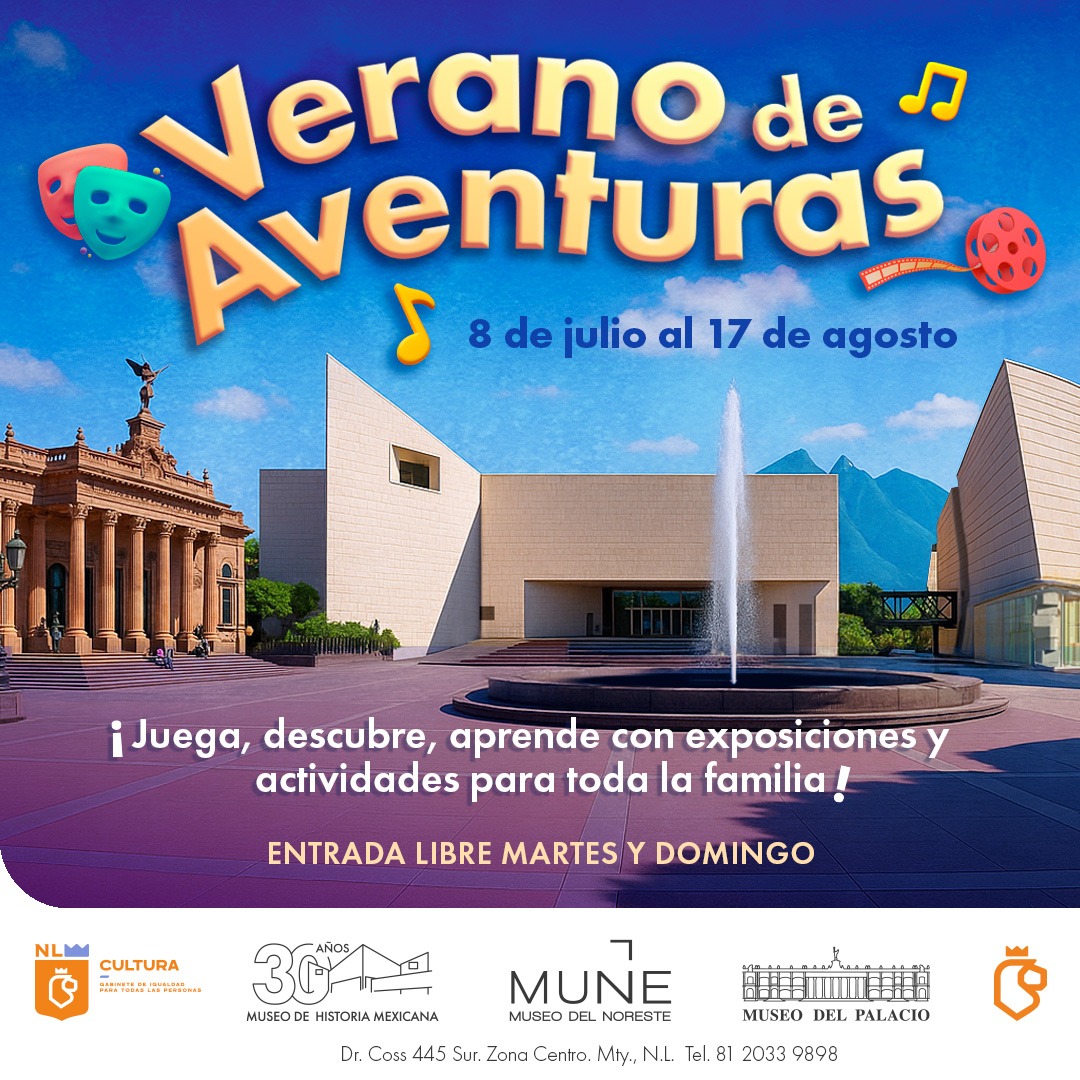 Monterrey, Nuevo León.- Durante este verano, Museo de Historia Mexicana, el Museo del Noreste y el Museo del Palacio se transforman en espacios de encuentro, imaginación y descubrimiento e invitan a las familias a vivir un “Verano de Aventuras”, con exposiciones, talleres y actividades escénicas y musicales pensadas para compartir entre generaciones, del 7 de julio al 17 de agosto.