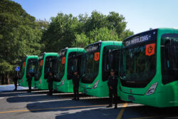 Realiza entrega de 24 camiones de la ruta 224 Arboledas-Monte Cristal-Centro, que forman parte de una segunda adquisición de 2 mil camiones.