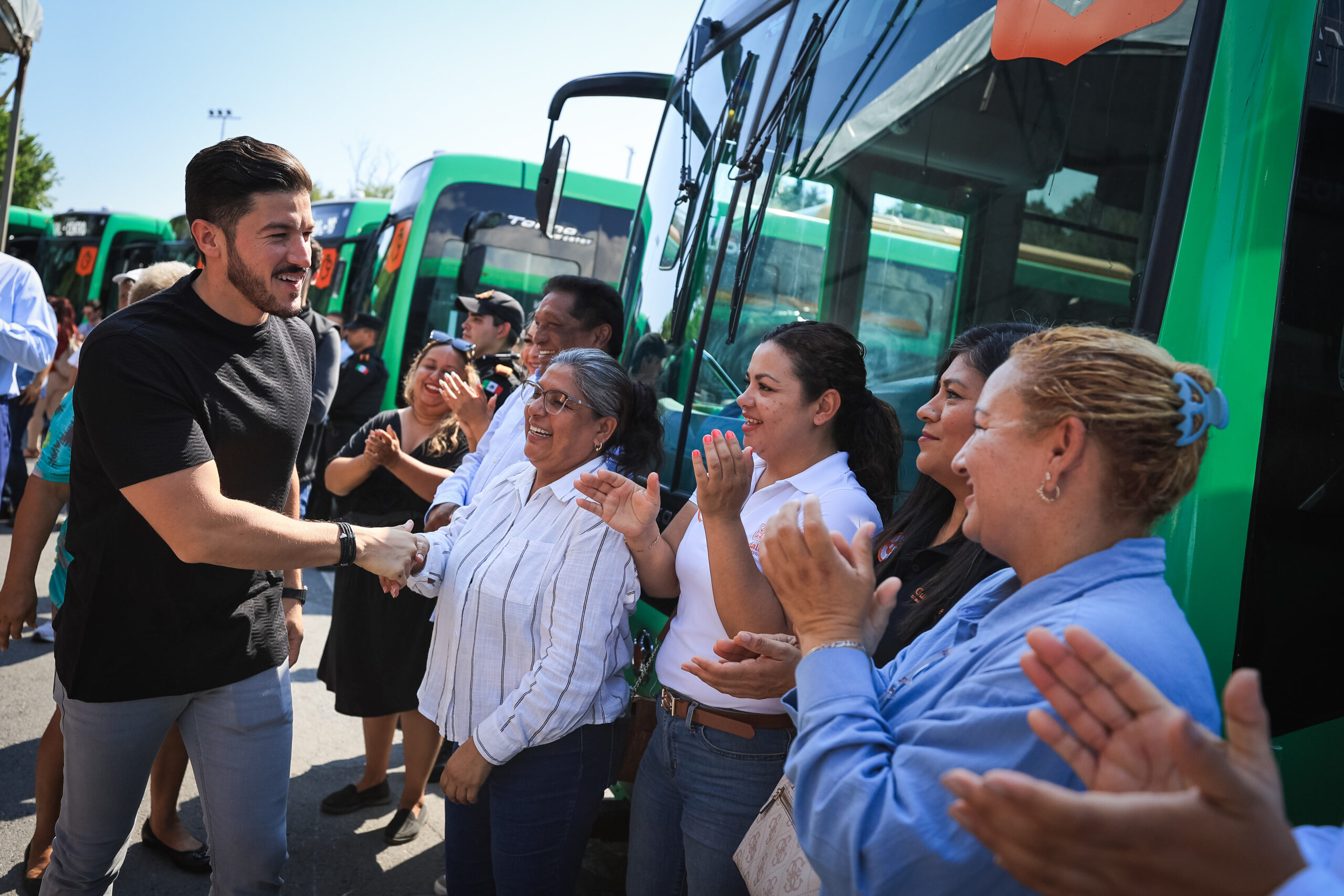 Acompañado del Director General de Metrorrey, Abraham Vargas; y del alcalde de Guadalupe, Héctor García, el Mandatario estatal destacó que estos forman parte de la segunda tanda de 2 mil autobuses equipados que garantizarán una atención de calidad para los usuarios y ser el primer lugar en movilidad rumbo al Mundial de FIFA 2026.