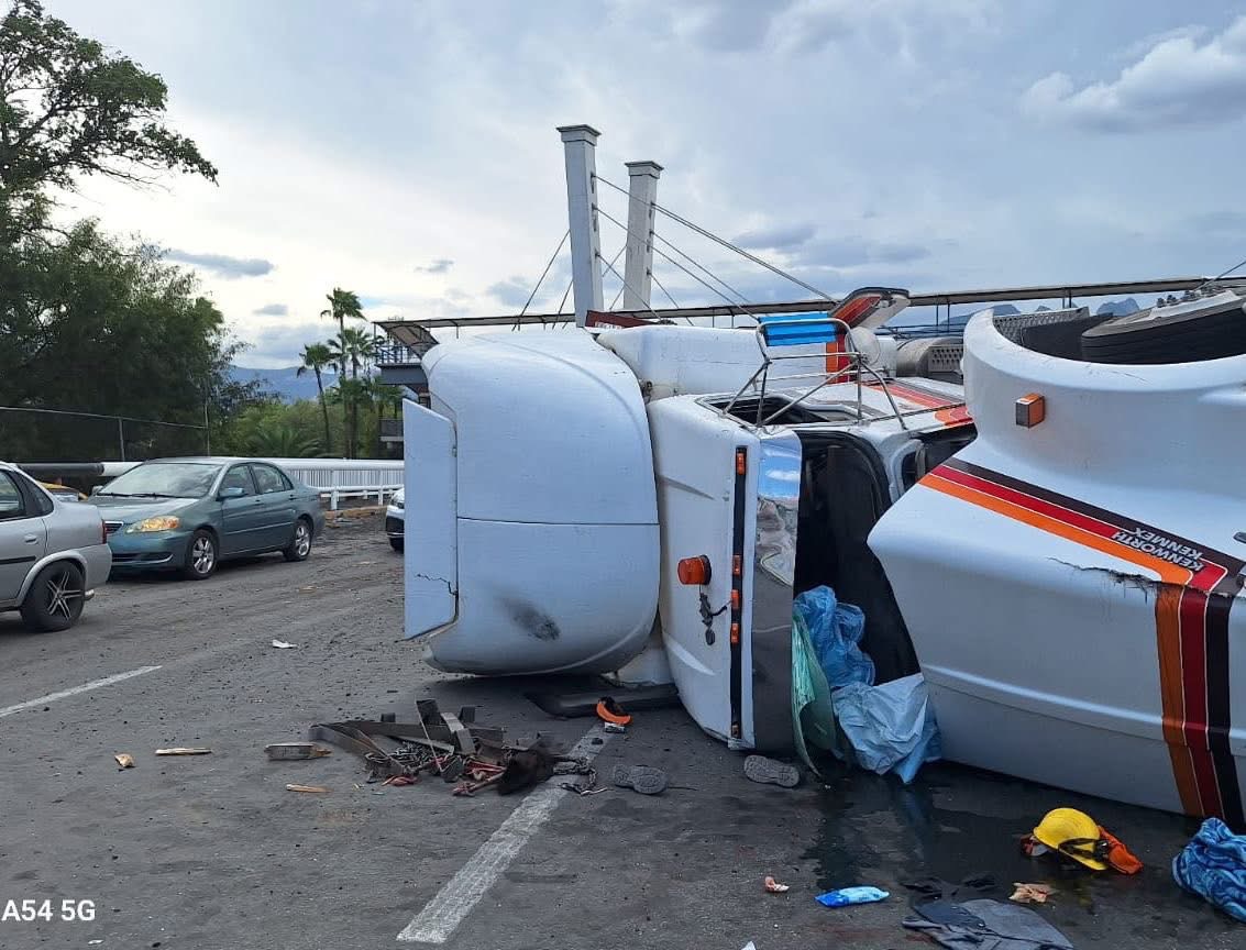San Nicolás de los Garza, NL.– La tarde de este domingo se registró la volcadura de un tráiler en el cruce de la avenida Fidel Velázquez y Fray Luis de León, en la colonia Anáhuac, en el municipio de San Nicolás de los Garza.